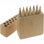 Astucci tondi in cartoncino, rettangolari in legno provvisti di righello, astucci quadrato in cartoncino, astuccio tondo con tappino in plastica temperamatite.